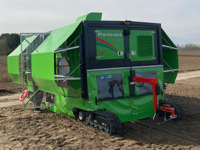 Planttrack. Plantmachine behuizing. Hydrauliek systeem aangedreven door geluidsarme Dieselmotor, 4 stuurbare vlakke tracksystemen, volledig automatisch gestuurd op basis van GPS, machine ingericht voor een aangename werksfeer met ledverlichting, audio installatie, perslucht en remote controle systeem, behuizing geschikt voor meerdere plantsystemen.